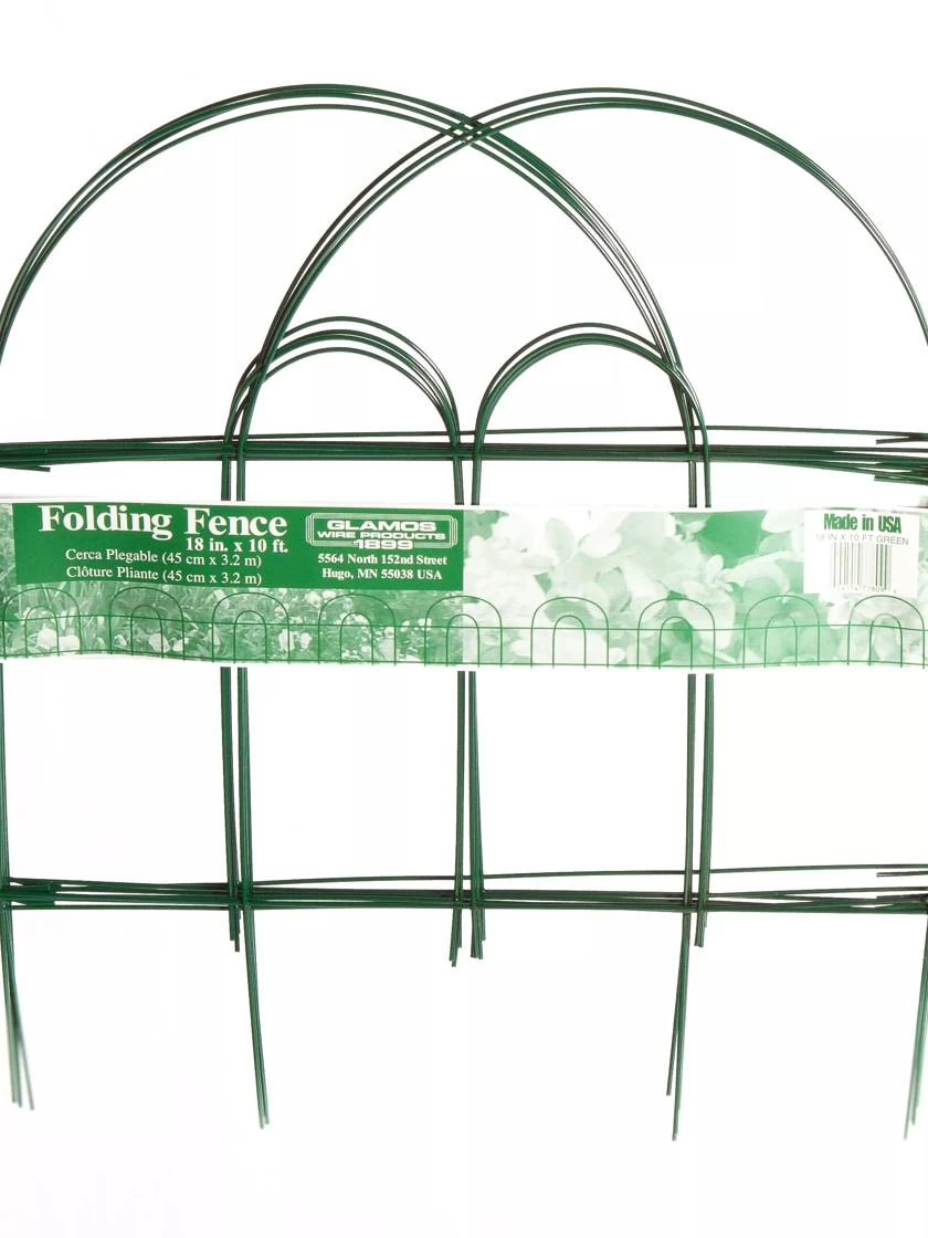 Keep small dogs and children from trampling your gardens with these 18″ x 10β folding wire border fences. These wire fences make an attractive border for gardens and sidewalks while keeping small critters and kids out. Made in USA with American-sourced steel with a powder-coated finish.Β Β